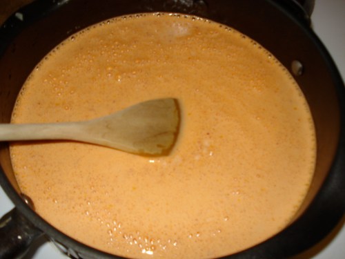 did you just dump the arrowroot slurry back into the reduced pepper/garlic/vinegar mixture and expect it to get thick? or did you dump in the slurry and then bring the whole thing to a boil?