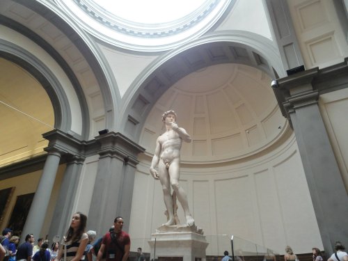 The next morning, we headed to the Accademia Gallery to see Michelangelo’s David, of course. We had four tickets reserved, to avoid waiting in long lines, but we needed a fifth for Eddie. We thought he would have to stand in line to get his ticket, forgetting for a moment that we were in Italy. So, of course, he was just able to skip the line and enter with us, because no one in Italy really gives a shit. And then we spent the next while marveling at David, which is larger and more impressive than you would have thought. You stare at him, and it is very easy to trick yourself into thinking that he flinched, or that his chest expanded with breath. It’s astonishingly lifelike. I’ve seen it twice in my life, but it really never gets old. The veins in his feet are perfect, for Christ’s sake. But I’m not very adept at describing or even fully appreciating art, and thousands of people far more qualified than I have spent countless years analyzing this statue, so I’ll stop embarrassing myself by trying to describe it. Needless to say, it’ll make you feel pretty inadequate about anything you’ve accomplished in your lifetime. Especially when you consider that Michelangelo, that magnificent, selfish bastard, has both this AND the Sistine Chapel on his resume. It should be impossible to be that talented.
