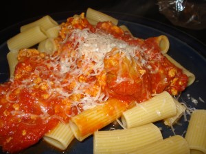 But, alas, we did have watery spaghetti. Not even a can of tomato paste could save it. I don’t know what Gwyneth was thinking making me cover the pot almost completely for the entire five hours. I don’t see how that wouldn’t always create a watery sauce. Of course, I’m forgetting one key fact: Gwyneth already told me she never even makes this recipe. So, you know, fuck the rest of us.