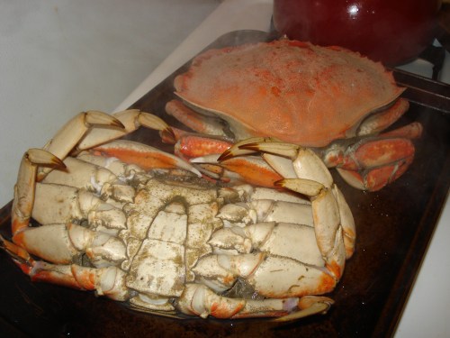 Crabs placed in the freezer to cruelly dull them into submission, we drove to the grocery store to pick up a few necessary supplies. Along the way, my date comforted me by reminding me that researchers discovered crabs can, in fact, feel pain. I briefly considered ditching him at the grocery store.