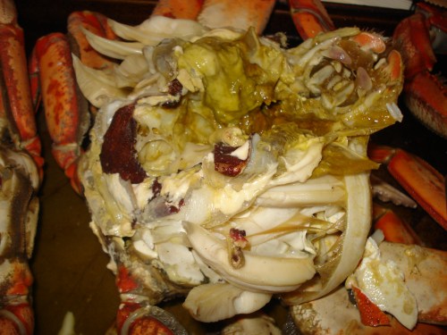 I loved talking to you before your slaughter began that night, but now that I’ve read the full experience of what you experienced later, I have such awesome respect for the consideration you have for these creatures, your writing which is to die for (excuse the pun), and the unbelievable photos of the insides of crabs which may never have been so clearly pictured before. Can’t wait to hear about the future lobster dishes – you are brilliant favorite grandson of mine!