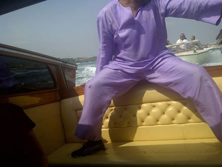 Things take a turn for the DRAMATIC, as an exciting paparazzi boat chase begins! Laurence Fishburne (strangely clad in what appear to be purple scrubs?) THROWS HIMSELF between the glaring photo lenses and Gwyneth’s precious visage. Which begs the question: Why is a major celebrity protecting another major celebrity from the paparazzi? Why can Laurence Fishburne be photographed at will, but Gwyneth must be protected from photos at all costs? I guess I just don’t understand Hollyweird!
