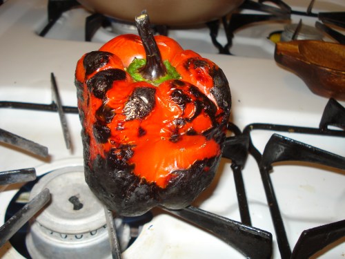 Roasting red peppers only counts as a recipe if boiling water counts as a recipe.