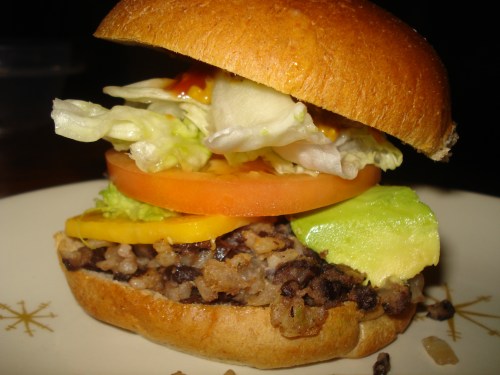 When it’s 11 pm and you’ve been making veggie burgers for 3 hours, you just kind of pile stuff on top of it.