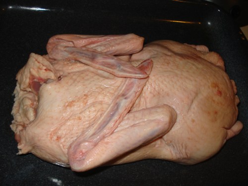 Step one is to roast a whole duck. So I preheated the oven, and nervously removed the dead bird from its bag. I opened the “cavity” and removed the little bag of innards and immediately discarded them because, come on, guys, that’s disgusting. I then rubbed the outside of the bird with olive oil, salt, and pepper, and then rubbed down the INSIDE, which was horrifying, just stroking the inner ribs of a dead animal. Oh god, it was the worst and I don’t want to talk about it anymore.