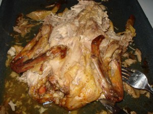 Sadly, it wasn’t even 4 pm, and we had a long way to go before dinner. But I also had this freshly opened bottle of wine on the counter, so why not taste a little of it? Next thing I know, I’ve watched nearly two hours of the first season of the Real World while the sauce was simmering on the stove, I had finished practically an entire bottle of wine by myself, and found myself afternoon-drunk, with a whole roast duck that still needed carving. I’d imagine this is exactly how it goes for Gwyneth at home when she makes this recipe.