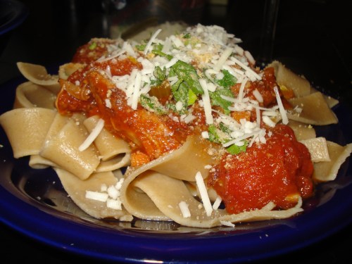 And then it was dinner time! The ragu was pretty delicious, if I may say so, although I was slightly disappointed that it wasn’t more delicious. I did cook for several hours, I spent a lot of money on various forms of duck, and the recipe began with her name-dropping a real, successful chef. It should have been mind-blowing. Instead, it was good. Sorry, everyone.