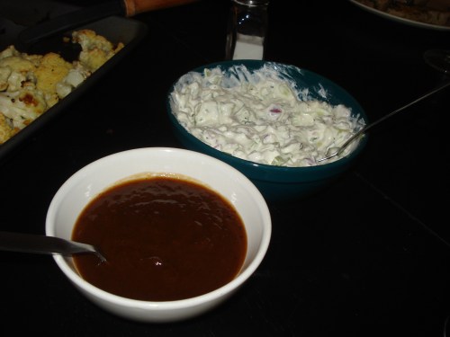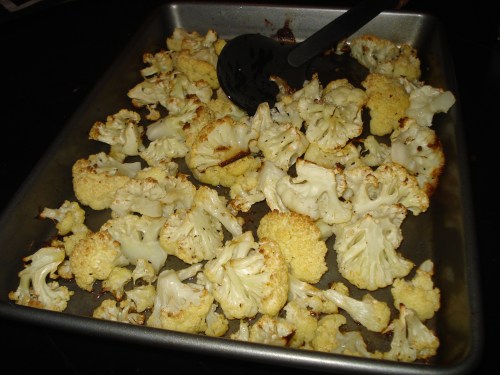 When everyone showed up, I heated up a grill pan and seared the tuna steaks a couple minutes on either side, so they were almost cooked through. Simple! I then served the tuna steaks with the raita and the guilty, evil, not-homemade chutney, along with a bowl of the butternut squash soup and OH MY GOD I JUST REMEMBERED THERE WAS A FIFTH RECIPE: Roasted Cauliflower! What a wonderful surprise! The reason I forgot is because this is one of Gwyneth’s fake recipes that aren’t really anything even close to a real recipe. Because, you see, she used a whole page to tell me to roast some cauliflower in the oven with olive oil, salt, and pepper, and serve it as a side. WOW. Ingenious. So, yes, we had that, too.