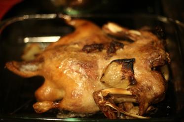 Back at the apartment, I preheated the oven and got to work scrubbing the duck. Though I’ve dissembled a whole chicken for Gwyneth before, I’m still not so used to, well, sticking my hand in dead animals’ orifices. So, this shit was gross. There was a neck shoved in its cavity! Or at least I think it was a neck? Was I supposed to do something with that? (I saved it for a day in my fridge out of guilt and then, at a loss for what to do with it, just threw it away.)