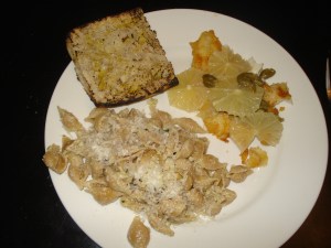 The peas not only transformed this dish but transformed ME, from an absolute Earth mother kitchen goddess who can whip up a pesto using fresh local Tuscan kale while pleasantly stoned, to a sullen bratty child miserably picking around the clumps of boiled peas in his dinner. Not cool! (But I probably will make a kale pesto adaptation of this again, so let’s take our victories where we can.)