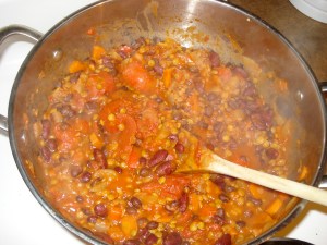 So I knew I needed to make something easy and healthy, if I wanted to make sure I didn’t feel like a fat slob after my workout. Gwyneth to the rescue! I decided to make her Vegetarian Chili, because it seemed easy, relatively cheap, and offered a lot of hands-off simmering time in which I could do all my personal training. Gwyneth would be proud of my multitasking, I imagined.